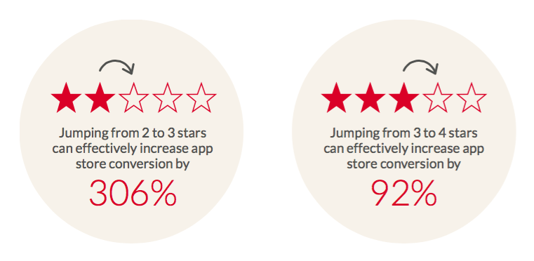 Last but not least, get as many reviews as possible for your app. When users find an app on the app store, the first thing they look for is its rating and reviews. If an app has poor reviews, it’ll get fewer downloads. Data from App Radar showed that ratings can increase your store conversion by 92%