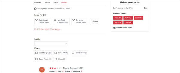 Unlike Zomato, OpenTable doesn’t let everyone publish a review about a restaurant. A diner must be confirmed as seated at the restaurant to give a review and rating about that restaurant. This feature makes much sense and also prevents fake reviews and promoted reviews.