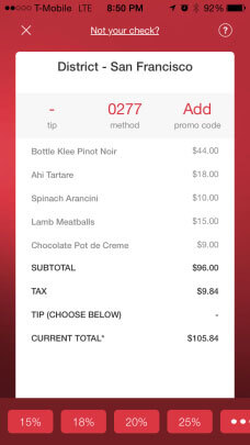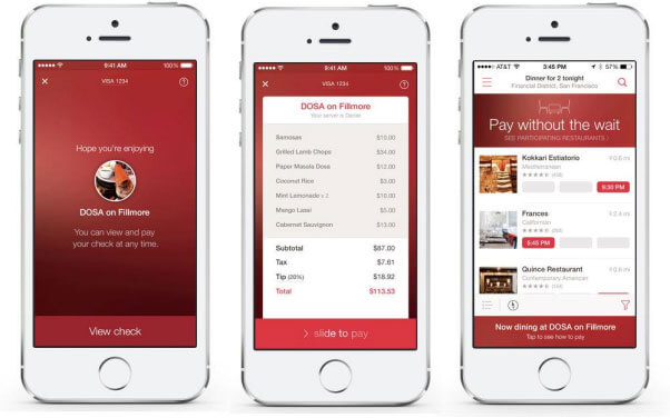 OpenTable mobile app allows Android and iPhone users to pay the restaurant checks (bill) inside the app itself via Apple Pay and credit cards. The transactions are processed via Braintree (a division of PayPal). Because of this feature, customers don’t need to wait for their bill; they can see the amount and pay instantly.